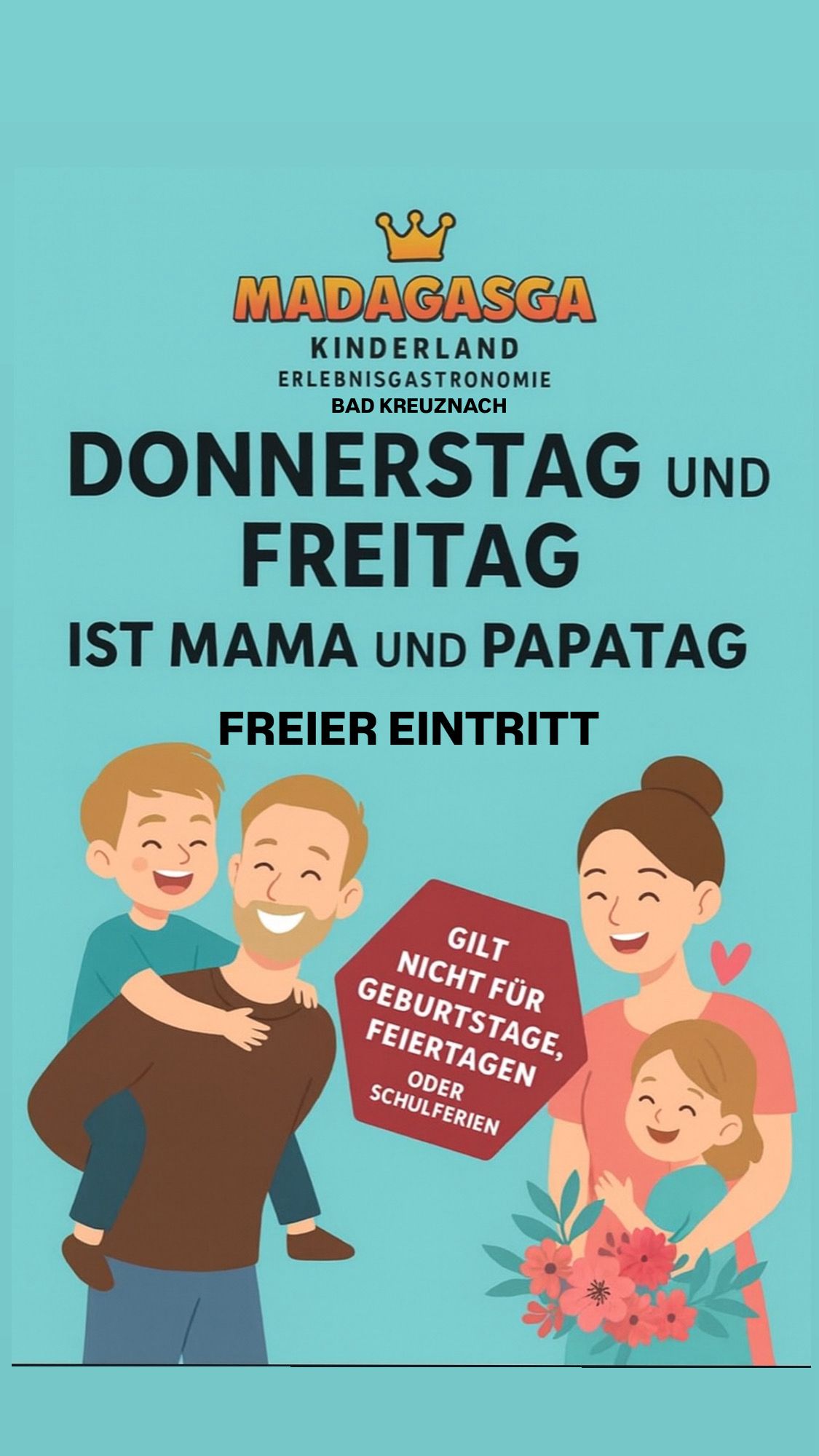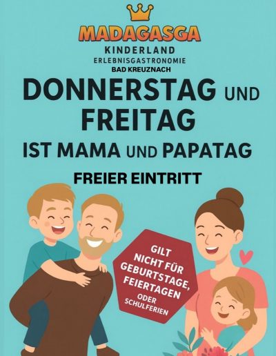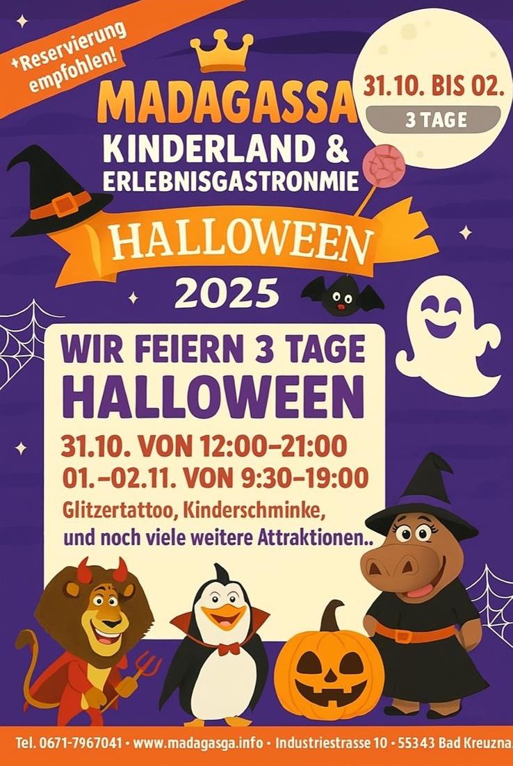 Ein Besuch im Madagasga ist grundsätzlich ohne Reservierung oder Voranmeldung möglich. Für Kindergeburtstage ist eine Reservierung nötig (nur online möglich) sie finden alle Daten auf unserer Homepage.