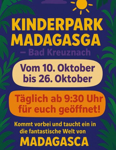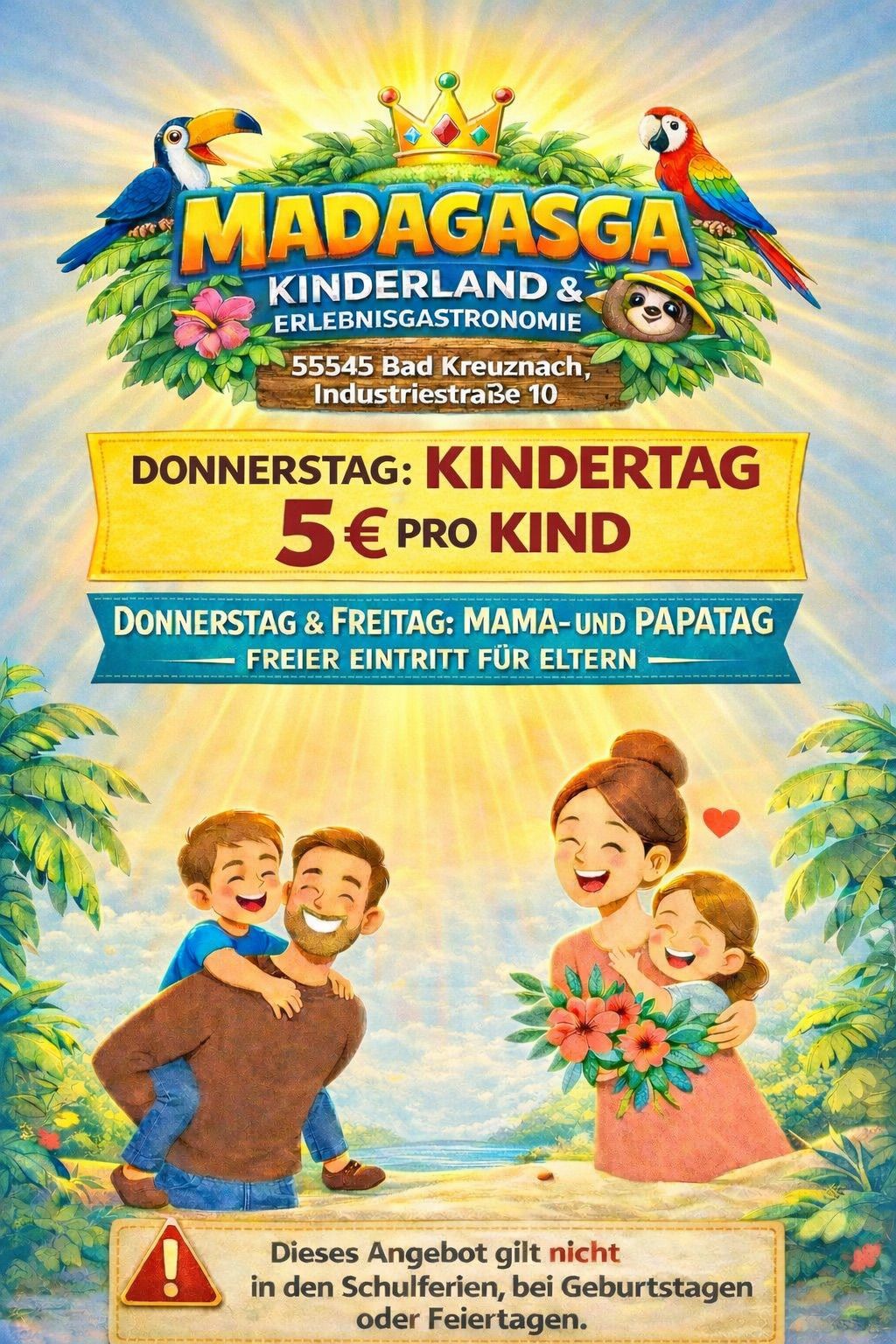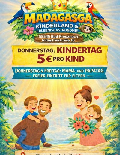 Egal ob Eltern/Kindergeburtstag oder für einen schönen Tag mit der Familie, die Erlebniswelt von Madagasga bietet jede Menge Spaß und Erholung.