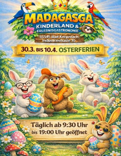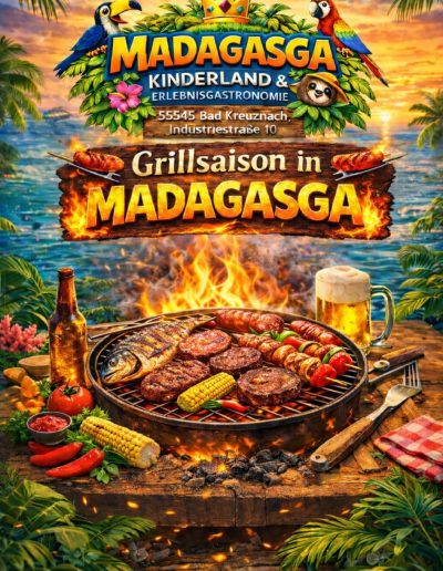 Wir vom Madagasga-Team sind Stolz darauf unseren Gästen dieses einmalige Konzept aus Spielspaß, Abenteuer und Entertainment zu bieten gepaart mit einer ausgefallenen Gastronomie, welche für jeden etwas zu bieten hat. Dabei achten wir besonders auf frische und regionale Produkten.